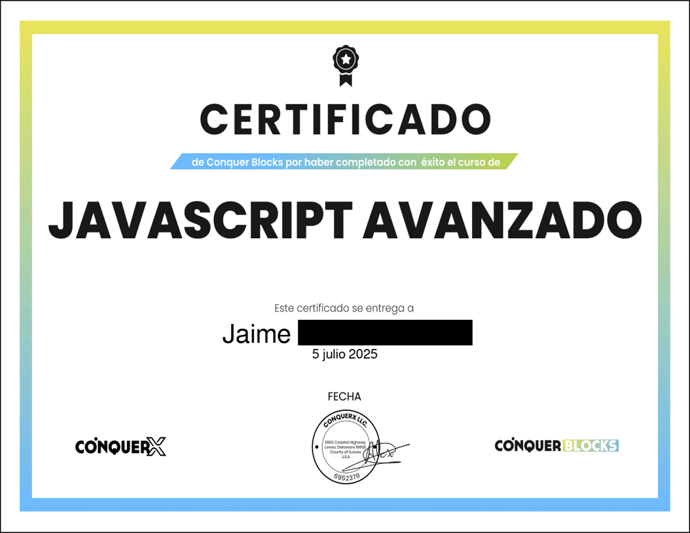 - Certificación de Máster en Desarrollo Web Full Stack y Blockchain (en proceso)