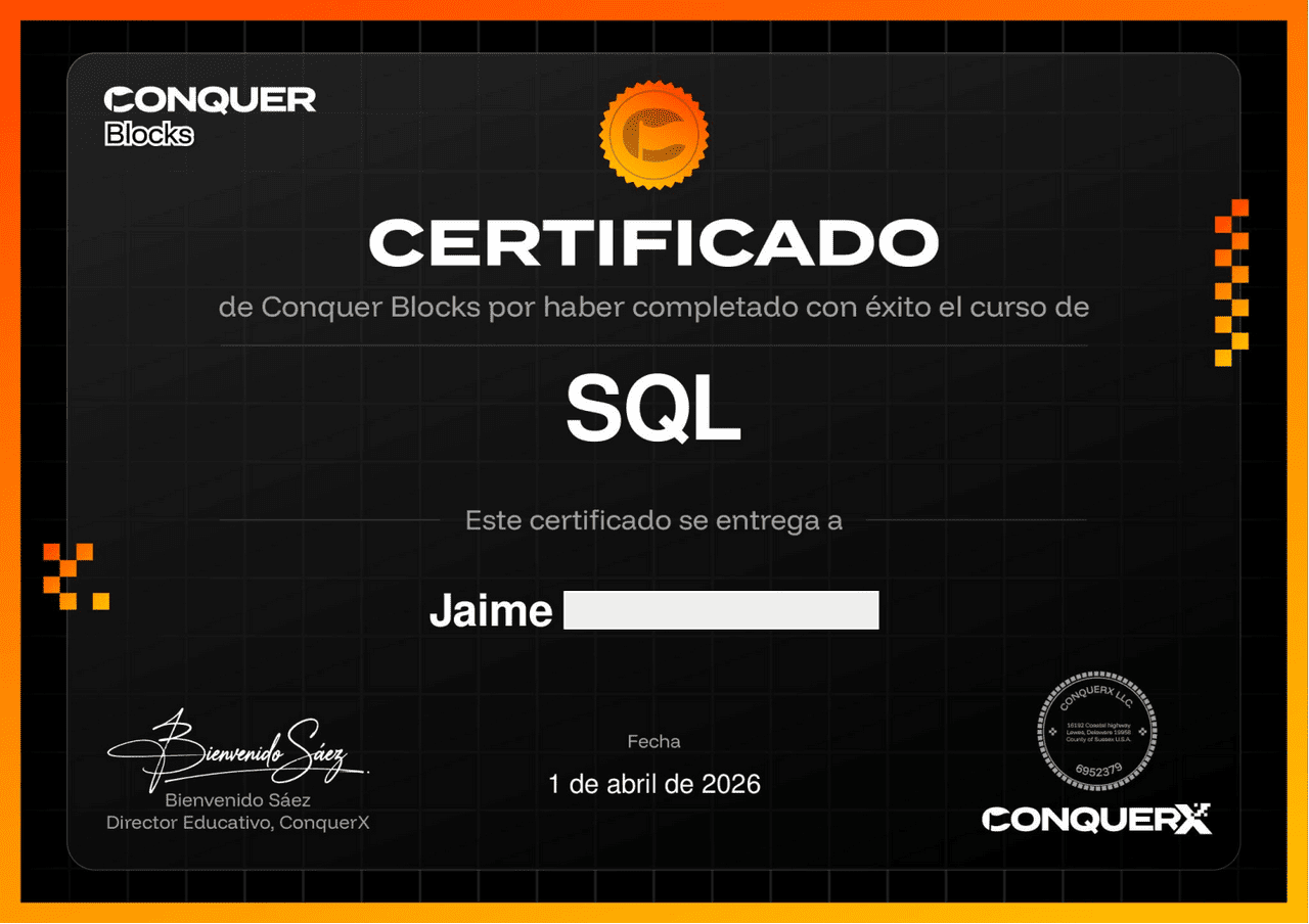 2022 - 2024, en Academia Conquer Blocks. Cursado online.