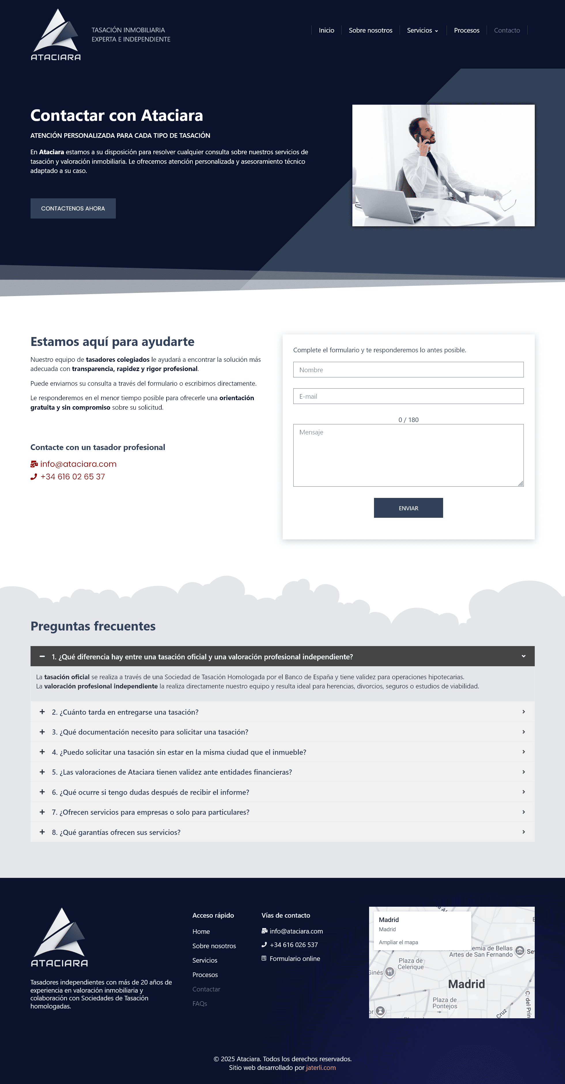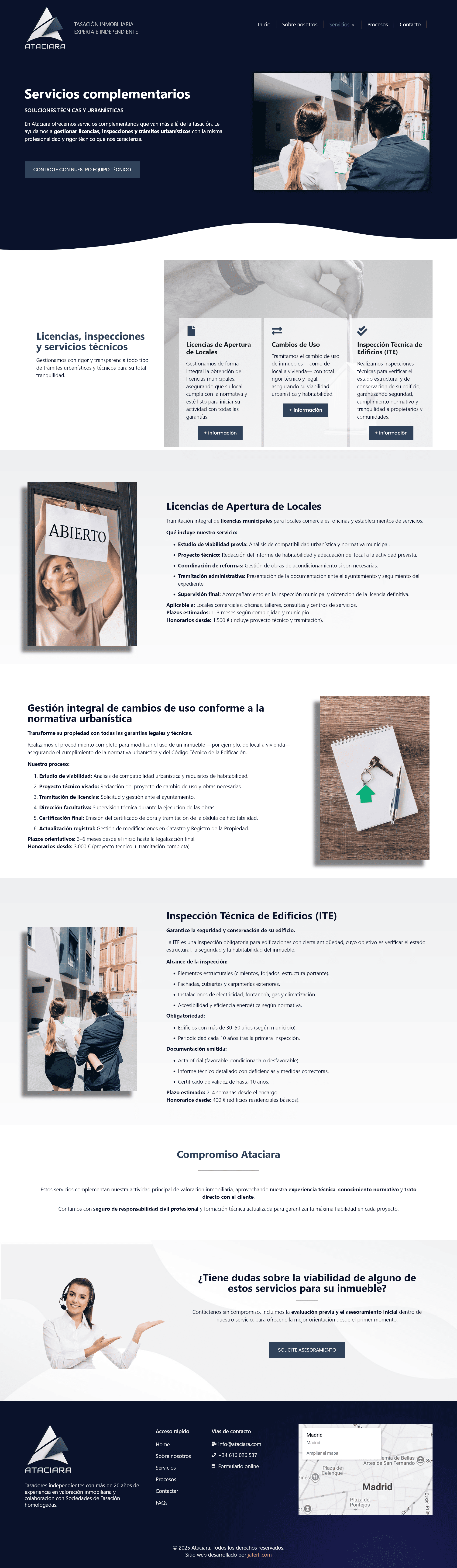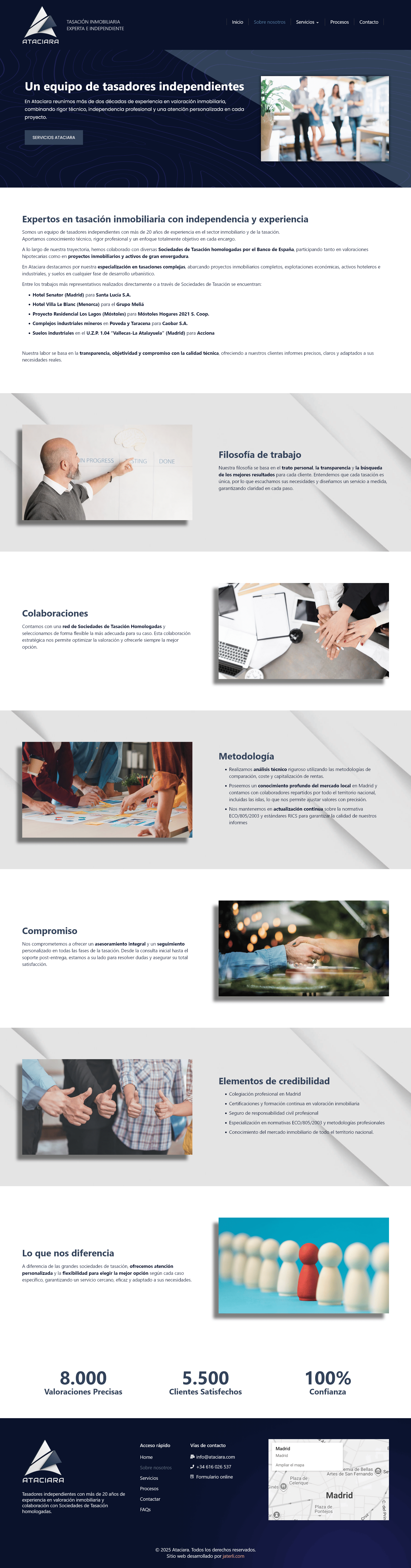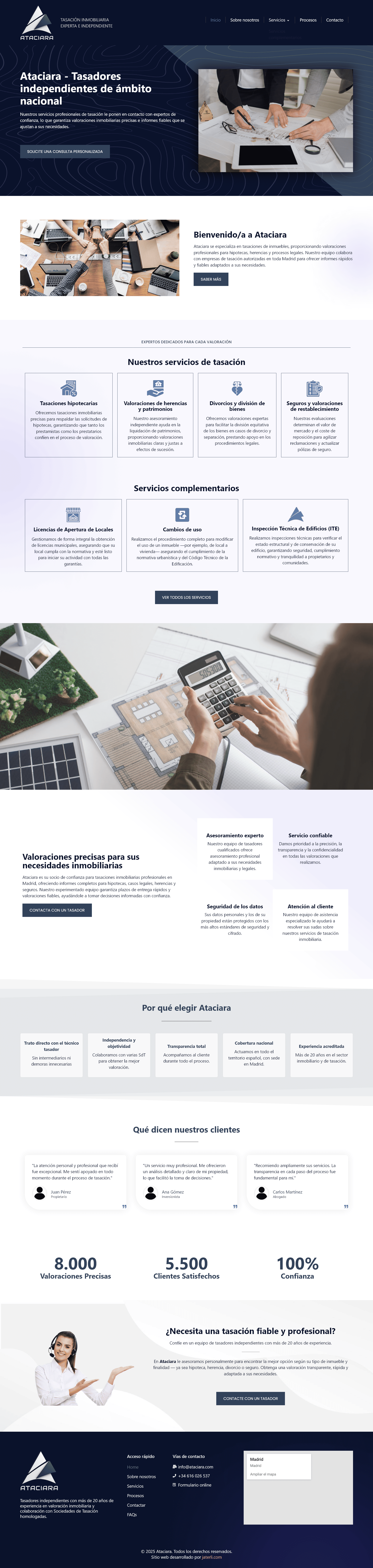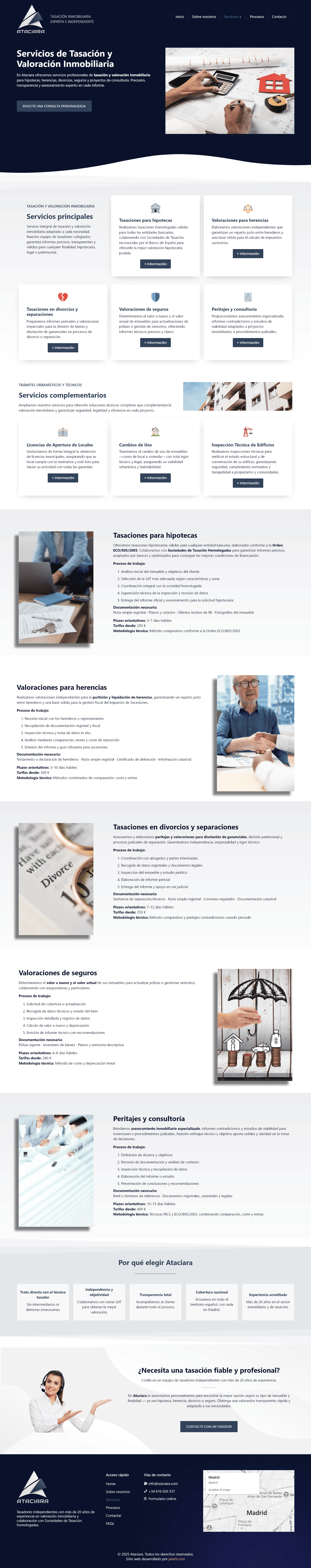El objetivo principal ha sido transmitir confianza y profesionalidad, facilitando al usuario el acceso a los distintos servicios de valoración inmobiliaria y servicios complementarios que ofrece Ataciara.