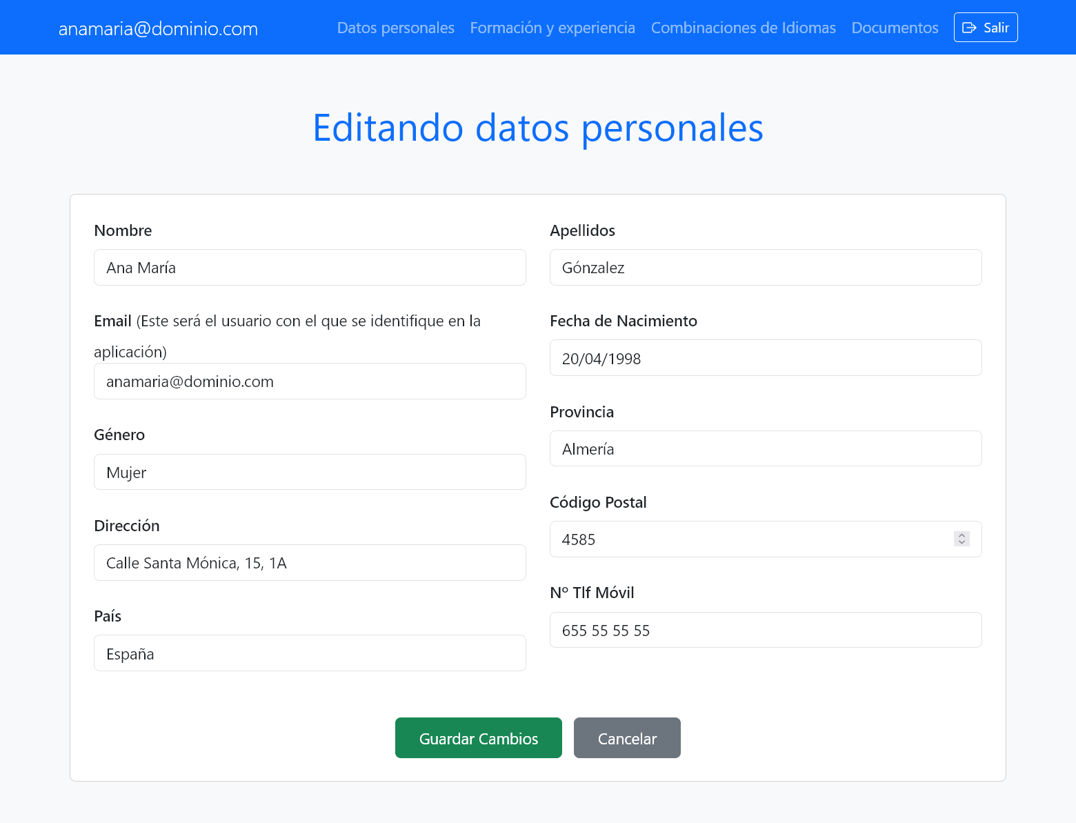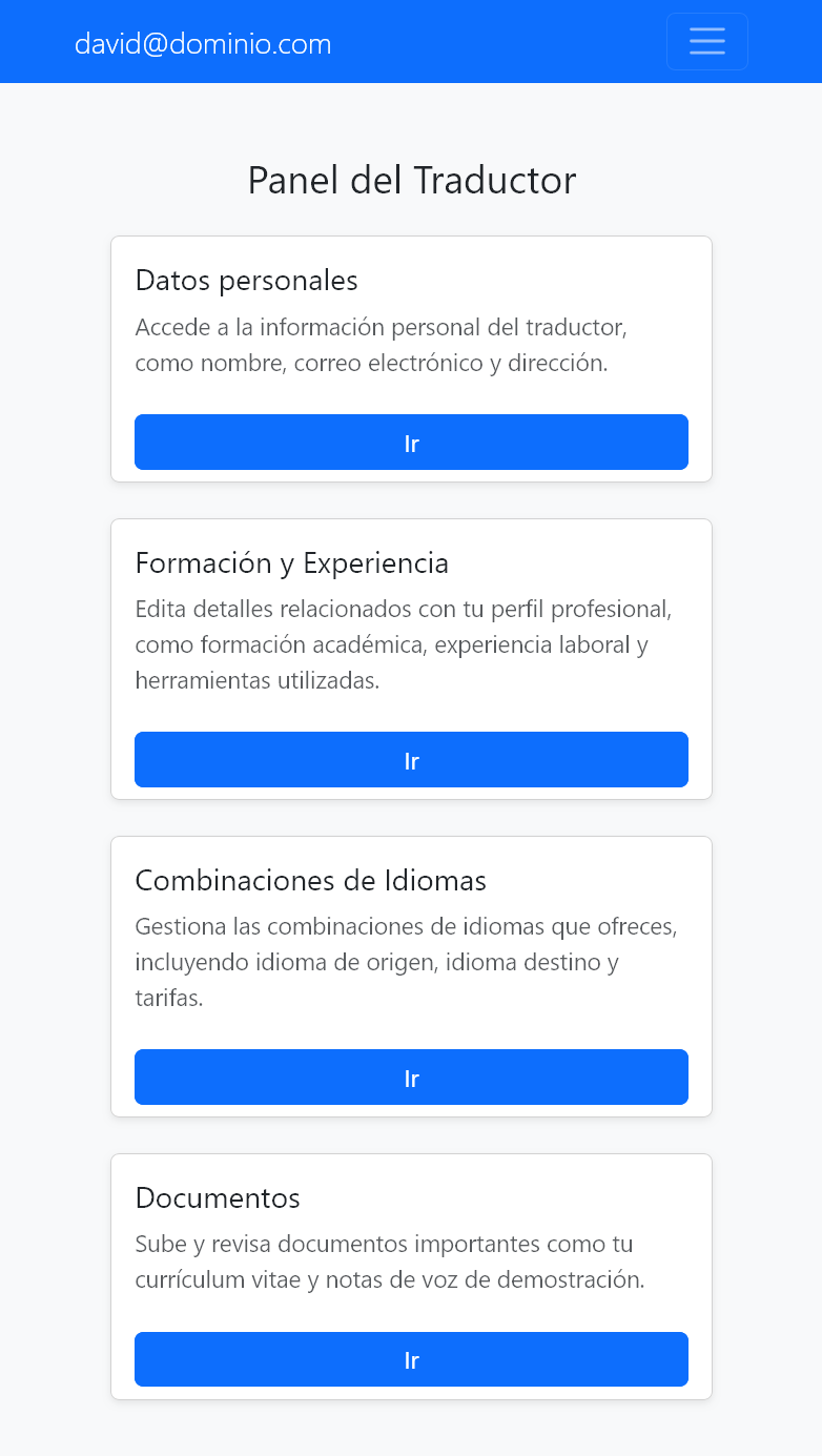 - Visualización detallada: Acceso al perfil completo de cada traductor, incluyendo documentos adjuntos.