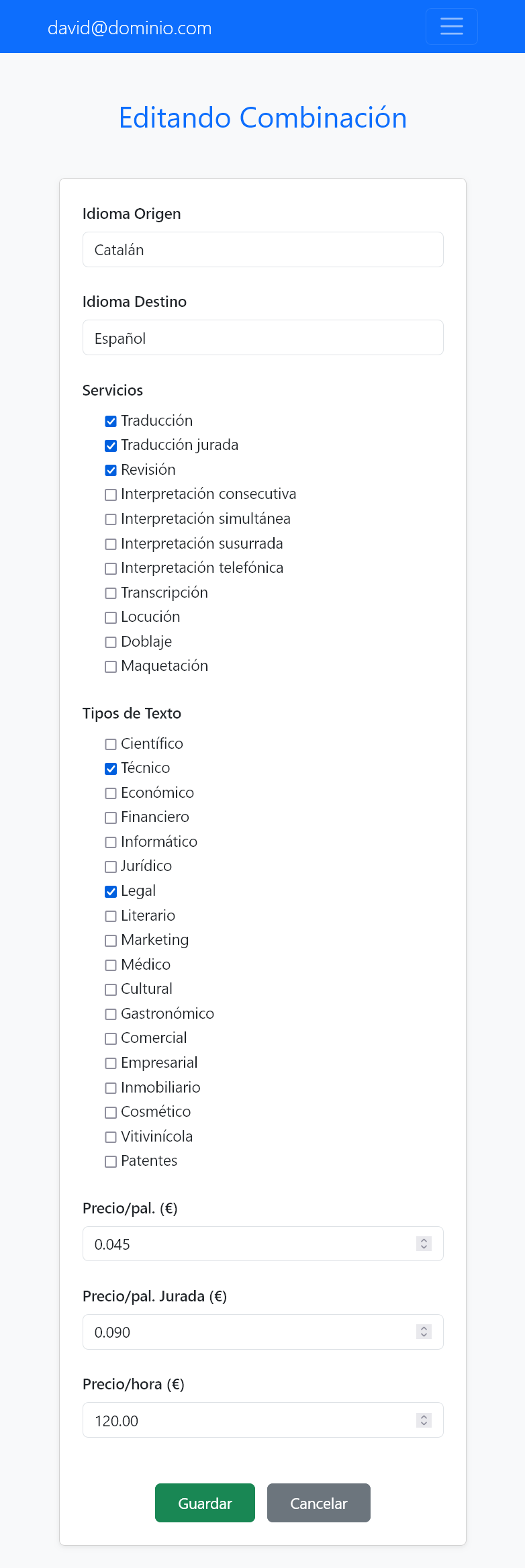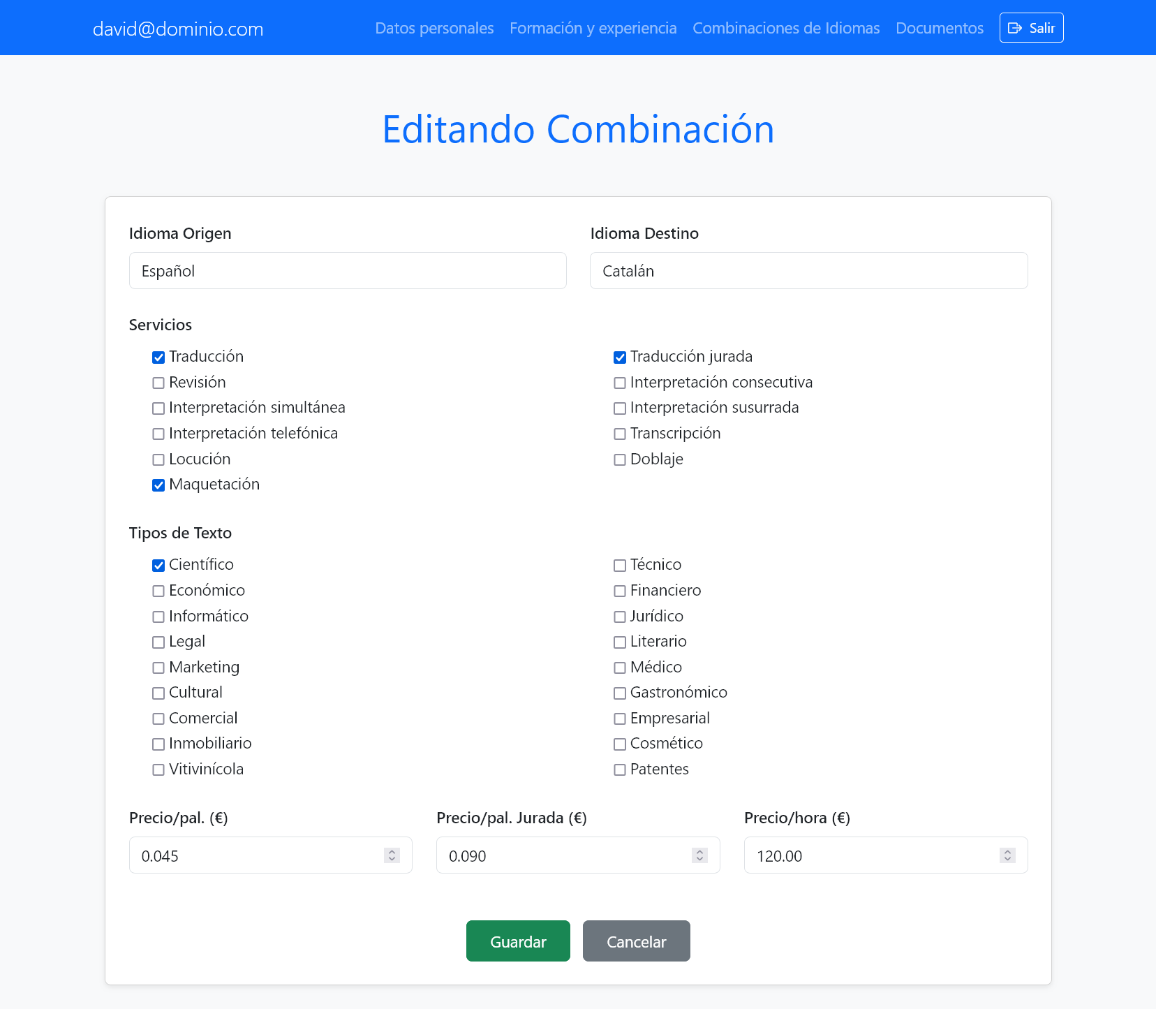 - Perfil profesional: Formación, experiencia, combinaciones de idiomas, etc.